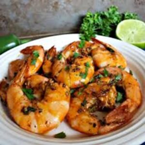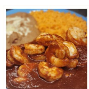 Camarones ala mexicana acompañado de artos y frijoles
